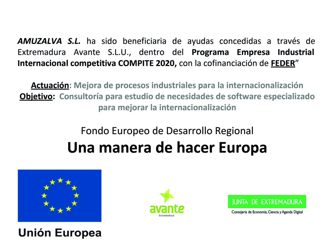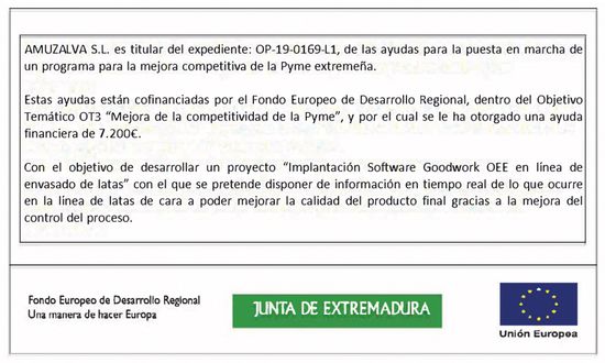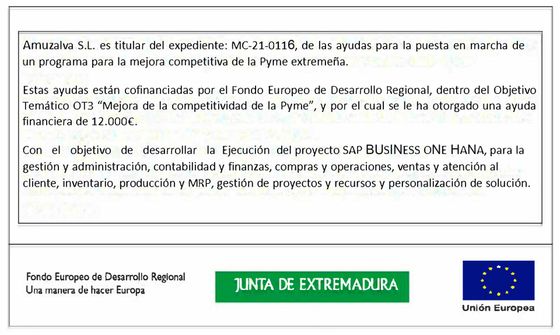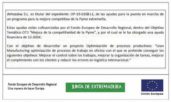 AMUZALVA S.L. es titular del expediente: OP-19-0168-L1, de las ayudas para la puesta en marcha de un programa para la mejora competitiva de la Pyme extremeña.